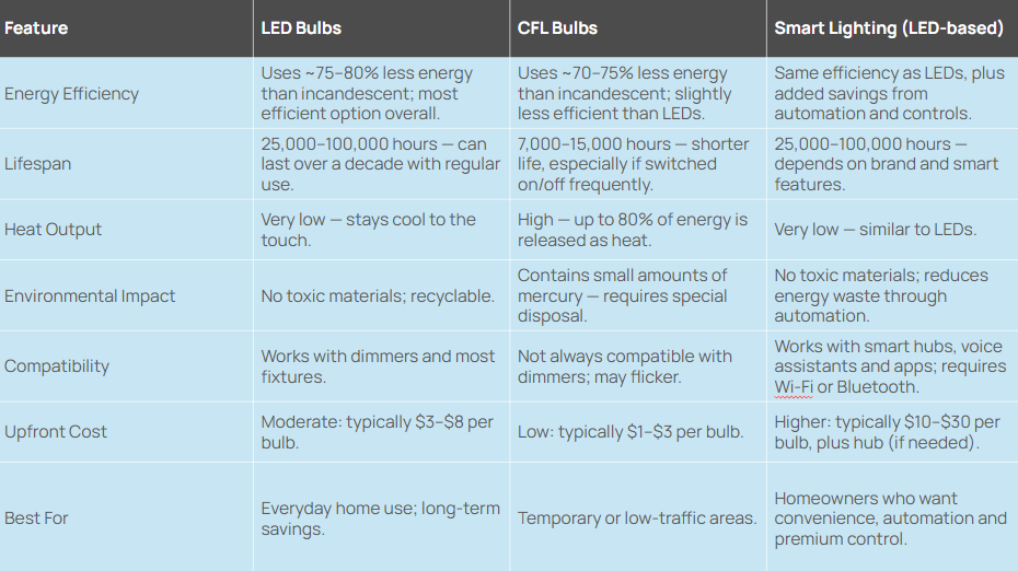 LED vs. CFL vs. Smart Lighting: What’s Best for Your Home?