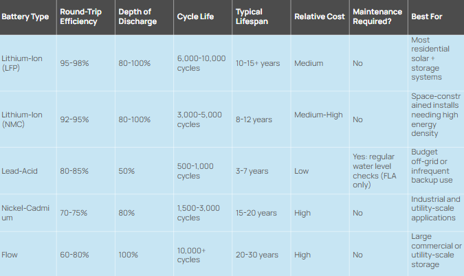 Solar Battery Comparison Table